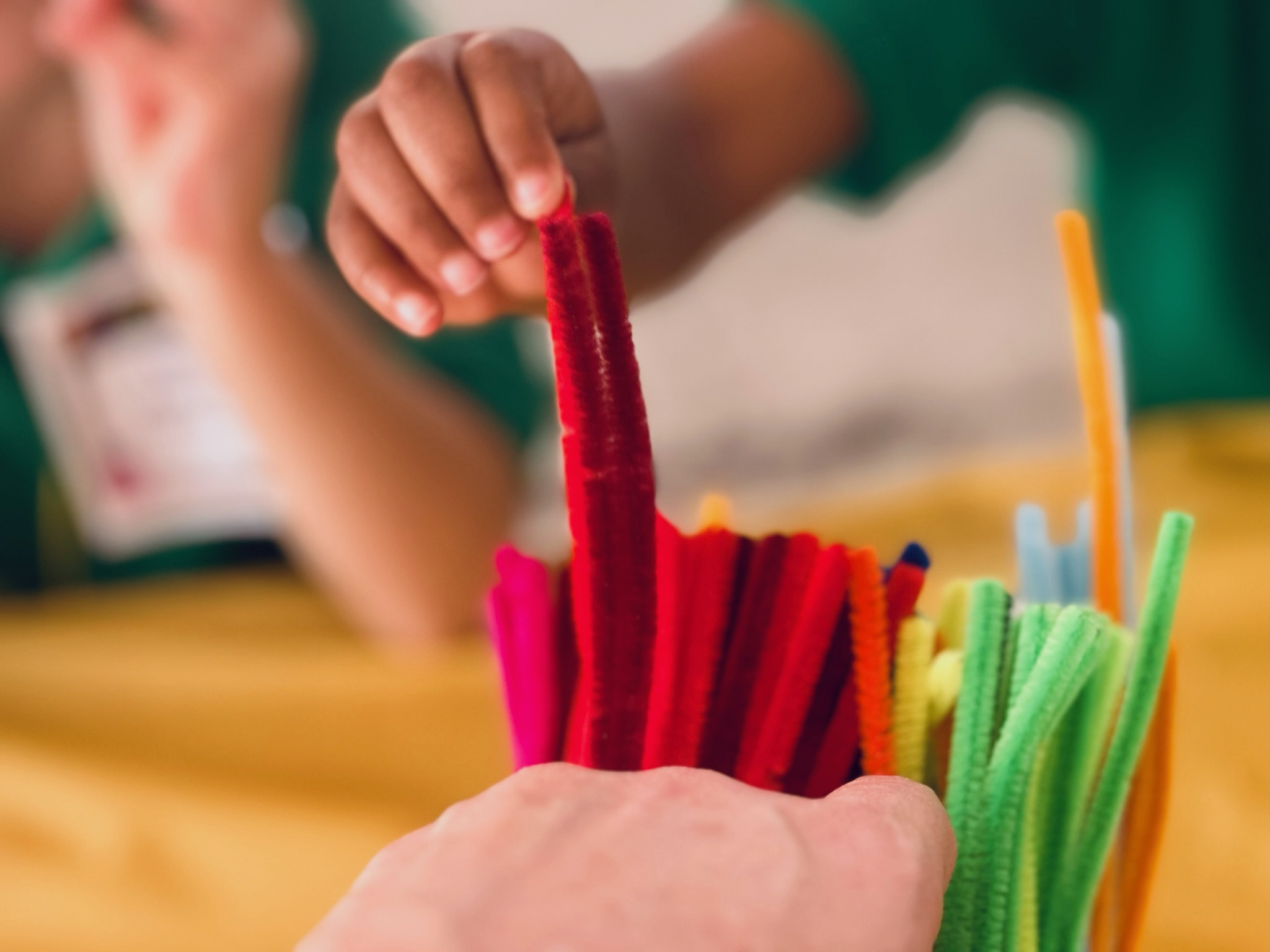 … and parents too! James Marks is more than a professional sculptor. He is a one man missionary spreading the gospel of wire art. Starting with easily accessible chenille stems, he allows people of all ages to learn the basics of twisting and wrapping wire. These creations build confidence and a sense of ownership in objects they build for themselves. Parents and teachers can easily learn these fundamentals and bring them back year after year with future children.